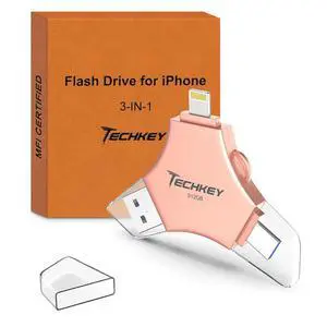 MFi Certified USB 3.0 Flash Drive 512GB for iPhone 3in1 External Memory Photo Keeper Storage Stick for Picture/Video/Data Saver/Backup High Speed Thumb/Jump/Hard Drives for iPad/Android/PC (Rose Pink)