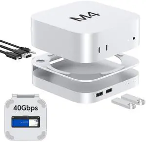 GEWOKLIY 40Gbps Aluminum Mac mini Dock and Stand, USB 4 Hub for Mac mini M4 and M4 Pro 2024 with 40Gbps M.2 NVMe SSD Enclosure, Triple USB A 2.0, 3.5mm Audio Jack Accesories