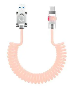 chubbycable Neon Chubby Neon Glow Coiled USB C Cable for Car 100W Fast Charging Spring Cable with Gradient Illumination Compatible with iPhone 17-15 Series, Pink, USB-A to Type-C, 1.64FT-4.43FT