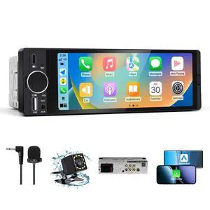 Single Din Car Stereo with Apple CarPlay & Android Auto, 6.36 Inch HD Touch CarPlay Screen, Backup Cam,Bluetooth, USB Type-C, SWC, EQ, FM Radio (with External Mic)