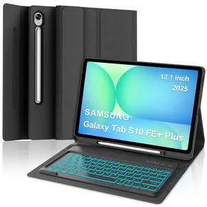 for Samsung Galaxy Tab S10 FE+ Plus 13.1'' 2025 Keyboard Case, 7 Color Backlit,Detachable Wireless Bluetooth Keyboard for Galaxy Tablet S10FE+ Case Samsung Tab S10 FE Plus Keypad with Pen Holder,Black