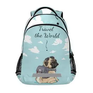 ALAZA Cartoon Cute Pug Dog with Quote Backpacks Travel Laptop Daypack School Book Bag for Men Women Teens Kids