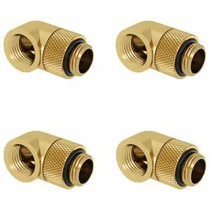 Barrow 4 Pack G1/4" Male to Female 90 Fitting, 360 Rotary 90 Degree Angled Elbow Connector, Enhance Multi-Link Rotary Adapter Fitting for Computer Water Cooling System, Gold