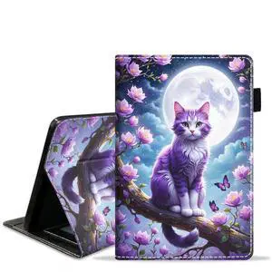 stmedazm Case for Kindle Fire HD 10 Tablet 10.1" (9th/7th Generation, 2019/2017 Release), Premium PU Leather Stand Cover with Auto Wake/Sleep - Cat Under The Moon