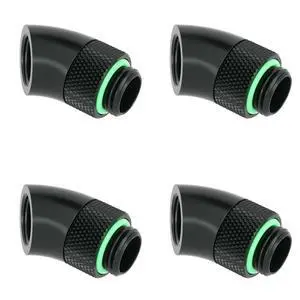 Barrow G1/4" Male to Female 45 Fitting, 360 Rotary 45 Degree Angled Elbow Connector, Rotary Extender Fitting for Computer Water Cooling System (Black,4-Pack)