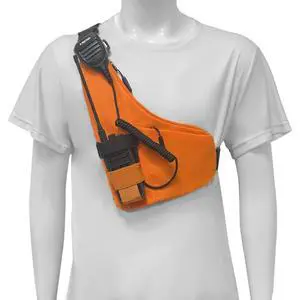 LSENG L-Type Radio Chest Harness Shoulder Radio Holster Chest Pack Adjustable Single Radio Pouch Two-Way Radio Holster Suitable for Motorola Kenwood Orange