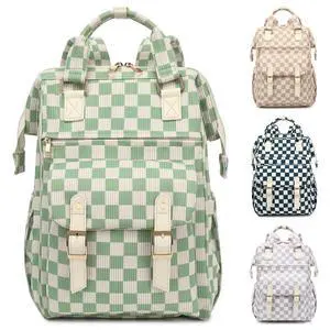 Lreneilu Corduroy Laptop Backpack for Women 15.6 Inch Stylish College School Bookbag, Business Work & Travel Computer Backpacks (Checkered Green)