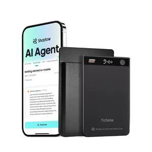 Mobvoi TicNote Obsidian AI Voice Recorder 64GB Memory, AI Transcription & Summarization, App Control, 120+ Languages, Digital Audio Recorder w/Case for Lectures, Meetings, Interviews, Calls
