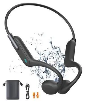 Rumatas Bone Conduction Headphones, Swimming Headphones Underwater Open Ear Built-in 32GB Memory IPX8 Waterproof for Swimming, Running, Cycling, Black