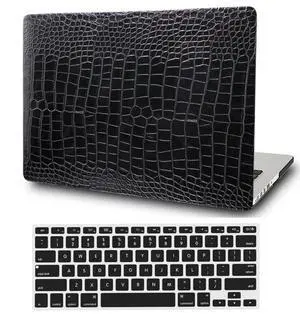 FFBOFFC Laptop Hard Cover Compatible with MacBook Air 13.6 inch Case 2024 2022 with Liquid Retina Display Model A2681 A3113, Leather Crocodile Print Shell Case Cover & Keyboard Skin, Black