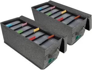 TWAVETREE CD Storage Box with Lid Pack of 2, Practical CD Case Holder Organizer with Index Labels, 14.6 x 5.7 x 6.1 Inches CD Storage Case to Store up to 70 CDs Jewel Cases, and 386 Discs- Grey