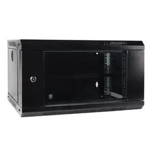 6U Wall Mount Network Server Cabinet with Glass Door, Locks, Removable Side Panels, for IT Equipment, A/V Devices, Black