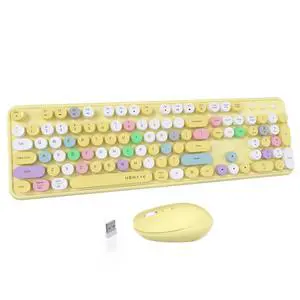 UBOTIE Colorful Computer Wireless Keyboard Mouse Combos, Typewriter Flexible Keys Office Full-Sized Keyboard, 2.4GHz Dropout-Free Connection and Optical Mouse (Yellow-Polychrome)