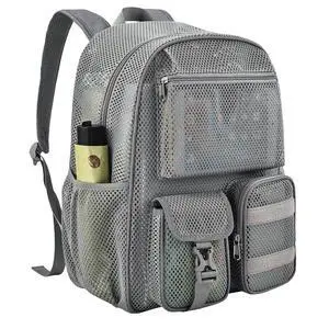 AROUVOG Mesh Backpack for School,with Inner Laptop Compartment,Semi-transparent Bookbag with Bungee and Comfort Padded Straps for Beach, Swimming, Sports, Work, Travel-Gray