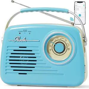 Retro Radios Portable AM FM, Battery Powered & Plug-in Wall, Vintage Radio with Bluetooth, Easy to Use Large Dial for Home/Outdoor/Kitchen (Blue)