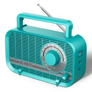 Audiocrazy Portable AM FM Radio with Bluetooth, Plug in Wall and Play, or AA Battery Operated Radios, Best Reception Vintage Retro Radio Built in Clear Speaker Headphone/AUX in Jack Turquoise