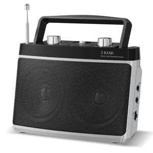 Audiocrazy AM FM Portable Radio Plug in Wall or Battery Powered for Home & Outdoor, Strong Reception & Stereo Sound, Easy to Use, Headphone Jack,Aux in,Small Gifts for Seniors Elderly Black