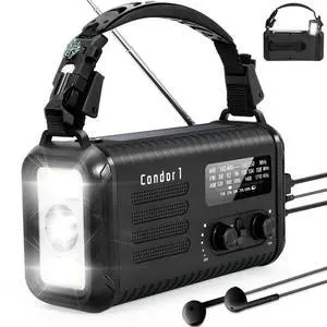 Emergency Weather Radio (Condor 1) NOAA/AM/FM with 74000mWh Portable Radio, USB-C/Solar/Hand Crank Charging, SOS Alarm, Flashlight, Reading Lamp & Survival Handle Kit for Indoor/Outdoor Emergency