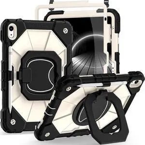 Auizotl Case for iPad (A16) 11th Generation 11 Inch (2025) iPad 10th Generation 10.9 Inch (2022),Shockproof i Pad Case 11.0/10.9 Inch with 360 Rotatable Folding Handle Stand,Black Beige