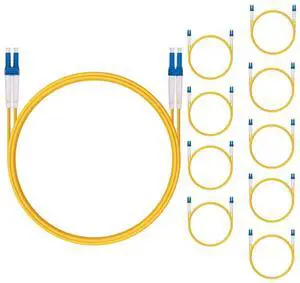 10 Pack 0.5M OS2 LC to LC Fiber Patch Cable, Single Mode SFP Fiber Jumper, Duplex LC-LC 9/125um, LSZH, 1.64ft, for 1G/10G SMF SFP Transceiver, Router, Networks and More, Available 0.2m - 100m