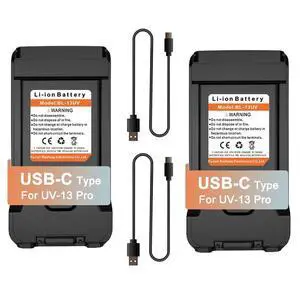 BAOFENG 2 Packs BL-13UV Battery USB-C Charging Enlarge Original Li-ion Battery Rechargeable DC7.4V for GM-15 Pro UV-13 Pro P15UV for TYT UV88 UV98 with Type-c Cables