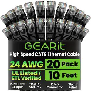 Cat 6 Ethernet Cable 200 FT, Long High Speed Cat6 Internet Cable, Black Snagless Patch Cord, Flexible, Network, LAN, PoE, Standard RJ45 Connector for PC, Server, Router, Modem, TV, PS5 - with 15 Ties