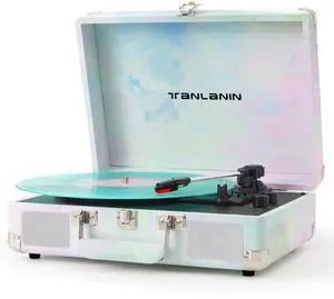 Watercolor Vinyl Record Player with Treble & Bass Control, Vintage 3-Speed Bluetooth Suitcase Portable Turntables with Built-in Speakers, 33 45 78 RPM LP Player Support RCA/AUX/Headphone Jack, Green