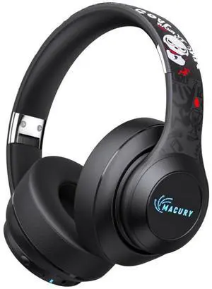 Macury Bluetooth Headphone, Over Ear, Foldable, Adjustable. Glowing Led Light, Noise Cancelling, HiFi Sound Quality (Black)