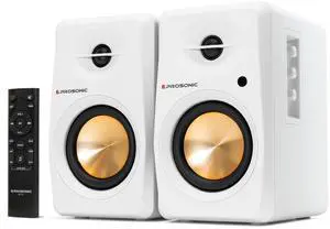 Prosonic BT30 White Bookshelf Speakers - Active Bluetooth 5.3 Powered Studio Monitors, 80W Desktop Computer Audio System with Optical/Coaxial/Aux for Turntable, Home Theater, TV & PC