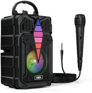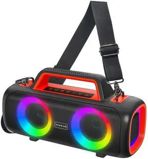 Portable Wireless Speaker with high-Definition Sound Quality, Voice Control Function, RGB Multi-Color Rhythm Lights, Suitable for Home and Outdoor use (Black)