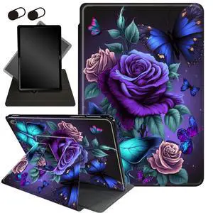 Case for All-New Fire Max 11 Tablet (13th Generation, 2023 Release),360 Degree Rotating Stand Smart Protective Cover Case,for Fire Max 11 2023 (13th Generation),Blue Pink Roses Butterfly