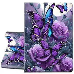 Beautiful Flower Butterfly Case Compatible with IPad 9th 8th 7th Generation 10.9 Inch 2021-2018,Funny Cover with Trifold Stand+Pencil Holder for Boys Girls,iPad 10.9in 2022