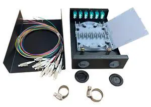 6-Port Fiber Optic Wall Mount Enclosure, OM3 Multimode LC-UPC, 12-Core Box with Pigtails, Black