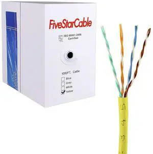 FiveStarCable Cat5E 1000 Ft. UTP 24AWG CCA Twisted Pair Networking IP Ethernet Security Camera Bulk Cable Wire Pull Box - Yellow Color