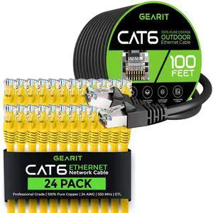 GEARit 24Pack 6ft Cat6 Ethernet Cable & 100ft Cat6 Cable