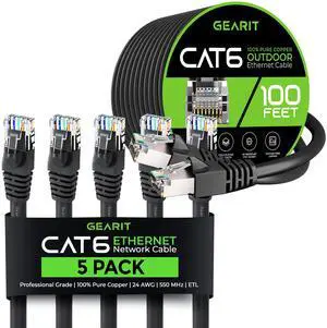 GEARit 5Pack 100ft Cat6 Ethernet Cable & 100ft Cat6 Cable