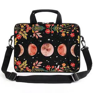 AMARY 13" 13.3" laptop sleeve chromebook case adjustable shoulder strap with handle accessory pocket (Flowers Moon)