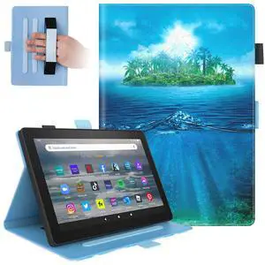 Dteck Case for Fire 7 Tablet 12th Generation 2022 Release, PU Leather Slim Folding Multiple Viewing Angles Stand Cover with Auto Wake/Sleep for Kindle Fire 7 inch 12th Generation,Beach