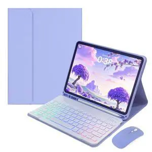 Disonbeir Rainbow Backlit Keyboard Case for iPad Pro 11 inch (4th/3rd/2nd/1st Gen) with Mouse and 7 Colors RGB Colorful Backlight Detachable Bluetooth Keyboard Cover,Purple
