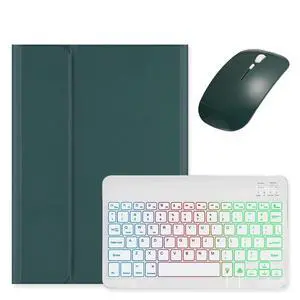 kaidisen Backlit Keyboard Case for Galaxy Tab S10 Lite / S10 FE / S9 FE 10.9", Tab S9/S8/S7 11" Case with Mouse and Detachable RGB Colorful Rainbow Backlight Keyboard,Dark Green+White