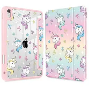 Lepeoac Case for iPad Air 13 Inch (M3) 2025, (M2) 2024 - [Built-in Pencil Holder] Shockproof Cover with Clear Transparent Back Shell, Auto Sleep/Wake Cover, Rainbow Unicorn