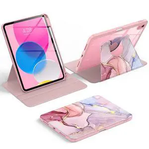 Soke Rotating Case for iPad (A16) 11th Generation 2025, iPad 10th Gen 2022 with Pencil Holder, [Shockproof + Auto Sleep/Wake] 360 Degree Rotation Clear Back for iPad 11"/10.9", Pink Marble