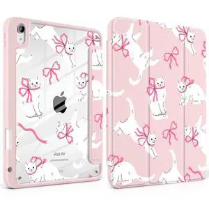 MEEgoodo Case for iPad Air 11 inch M3 2025 / M2 2024,for iPad Air 5th / 4th Generation Case 10.9 inch 2022/2020, Tablet Cover with Acrylic Transparent Back Shell, Cute White Cats & Bows