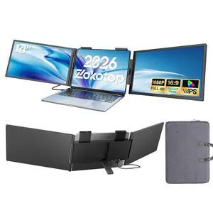 ZokoTop One Cable No Driver Laptop Screen Extender, 14" FHD IPS Ultra-Slim Triple Portable Monitor, Single USB-C Plug & Play, Travel Monitor for 13"-16.5" Windows & MacBook
