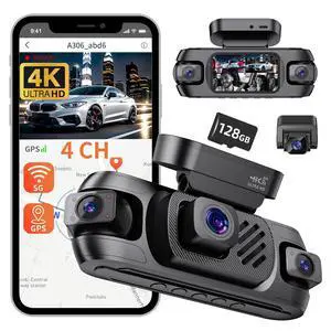 4K 4 Channel Dash Cam Front and Rear, 360View Dash Camera for Cars with GPS, G-Sensor, 5G WiFi, Loop Recording, App Control, 8 Lamps IR Night Vision, 24/7 Parking Mode, 128G Card