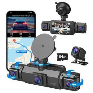 AFYWO 4 Channel Dash Cam, Front and Rear, 360 Dash Camera for Cars, 1080P FHD x4, Front 2K+1080P*2 Inside Camera, Built-in WiFi, GPS, Night Vision, 24/7 Recording Parking Mode Monitor, Free 64G Card