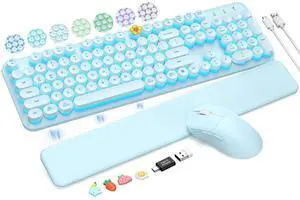 Wireless Keyboard and Mouse Backlit - Typewriter Keyboard with Detachable Wrist Rest, Light Up Letters, 2.4G Rechargeable Combo for Mac, Windows, PC, Laptop, Trueque (Blue)