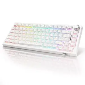 DstoPar Wireless Mechanical Keyboard,75% Hot Swappable Gaming Keyboard with Multifunction knob,Side Printed PBT Keycaps,Bluetooth5.0/Type-C/2.4G,8000mAh K81 Mechanical Keyboard(Camouflage White