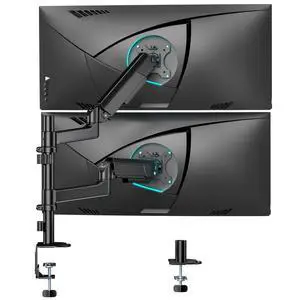 monTEK Dual Monitor Stand for 2 Screens 17 to 35 Inch, Heavy Duty Monitor Mount Arm, VESA Mount Desk Stand with C-Clamp/Grommet Base, Holds up to 24.3 lbs Per Arm, VESA 75/100mm, Gray