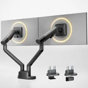 ARES WING Dual Monitor Mount - Ultrawide Monitor Arm for 40 34 32 27 Inch Heavy Duty Curved Screen Up to 26.4 lbs with Clamp/Grommet Desk Mount, 75/100 Vesa Mount, Black